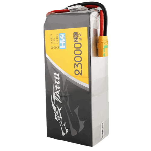 - 容量:23000mAh - 配置:6S1P / 22.8V - 放電率:25C - 最大瞬時放電:50C - 凈重(±20g):2474g - 200Wh/kg的能量密度 - 至少300+次循環壽命 - 平衡器連接器型號:JST-XHR-7P - 尺寸:208mm 長 x 91mm 寬 x 62mm 高
