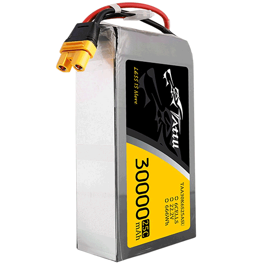 - 容量:30000mAh - 配置:6S1P / 22.2V - 放電率:25C - 最大瞬時放電:50C - 凈重(±20g):3228g - 200Wh/kg的能量密度 - 至少300+次循環壽命 - 平衡器連接器類型:AS150U-F - 尺寸:218mmx120.5mmx60.5mm(L*W*H)